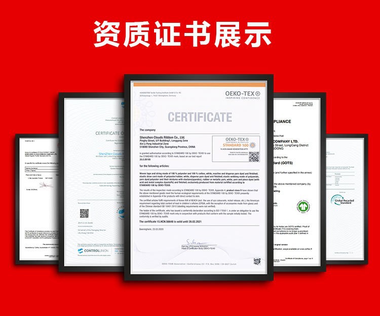 深圳市云彩织带有限公司正式成立于2007年,2020年11月10日公司名变更为:深圳市云彩纺织品有限公司。公司专注于服装织带、小香风织带,钩针带,针织带,提花织带,绳带,花边,子母带,松紧带,等织带产品的研发生产和销售,以及为服装设计师提供国内外服装绳带类的流行资讯。
